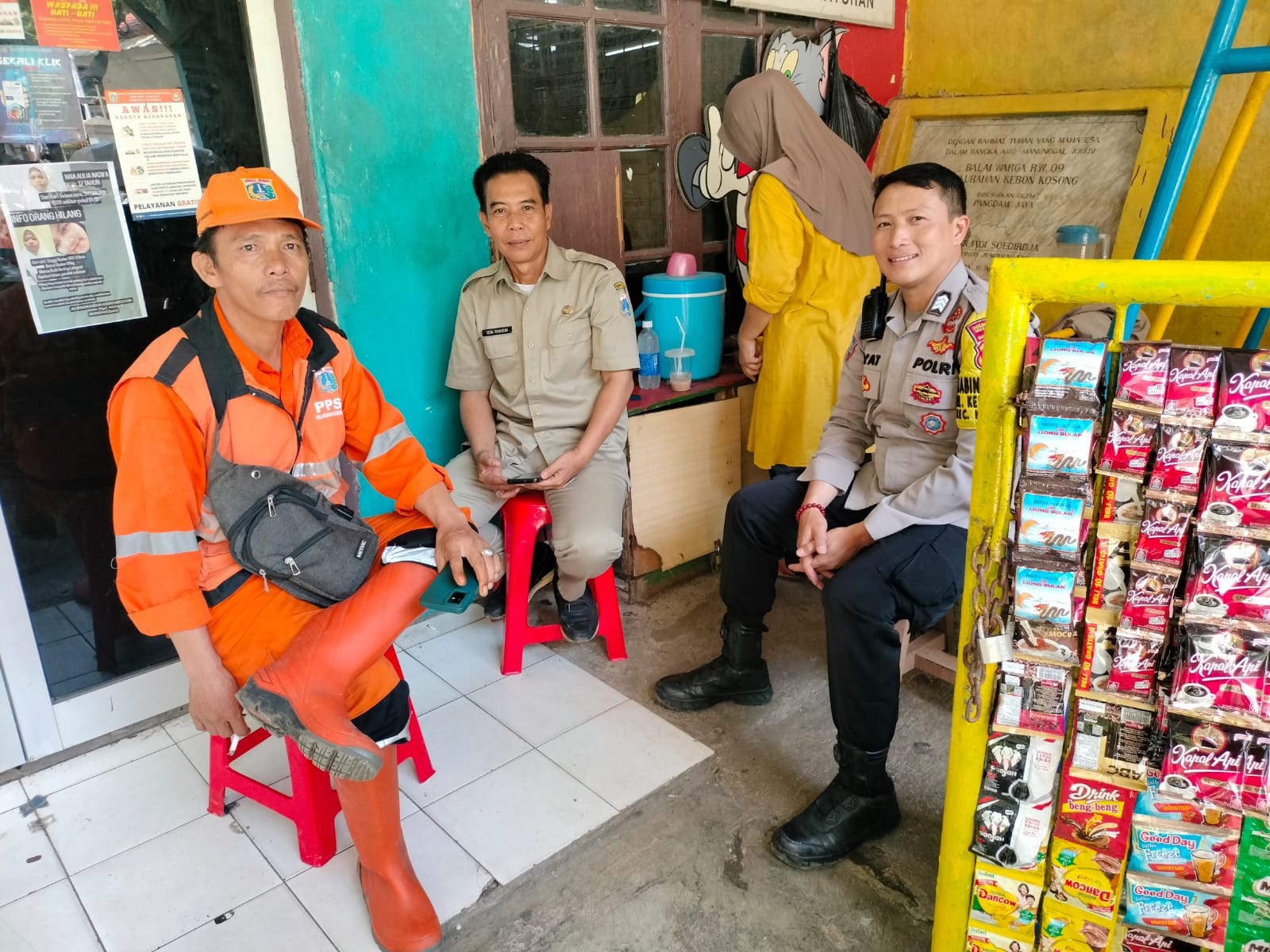 Bhabinkamtibmas Kelurahan Kebon Kosong Brigadir Yayat Ruhiyat melaksanakan sambang dialogis di Kantor Sekretariat RW 09, Jalan Dakota II, Kelurahan Kebon Kosong. Dalam kegiatan tersebut, Brigadir Yayat bertemu dengan Bapak Idin selaku perangkat kelurahan serta Bapak Hasibuan, petugas PPSU Kelurahan Kebon Kosong.