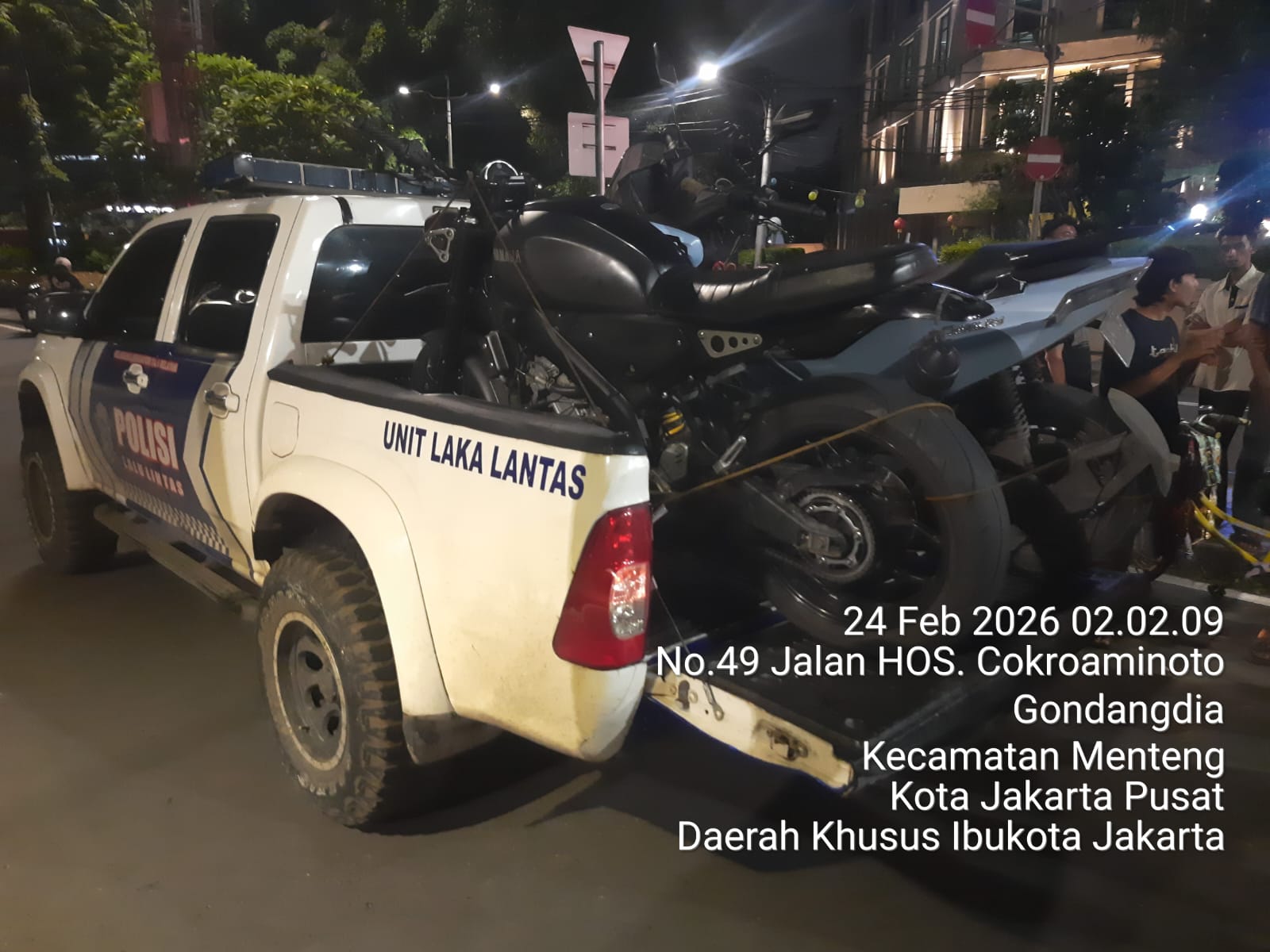 Jakarta Pusat – Polsek Metro Menteng bergerak cepat menindaklanjuti laporan warga terkait terjadinya kecelakaan lalu lintas pada dini hari di Traffic Light (TL) Jalan HOS Cokroaminoto, Kecamatan Menteng, Jakarta Pusat. Peristiwa tersebut dilaporkan terjadi sekitar pukul 02.00 WIB dan langsung mendapat respons dari jajaran kepolisian setempat demi memastikan penanganan yang cepat dan profesional. Selasa (24/2/2026)