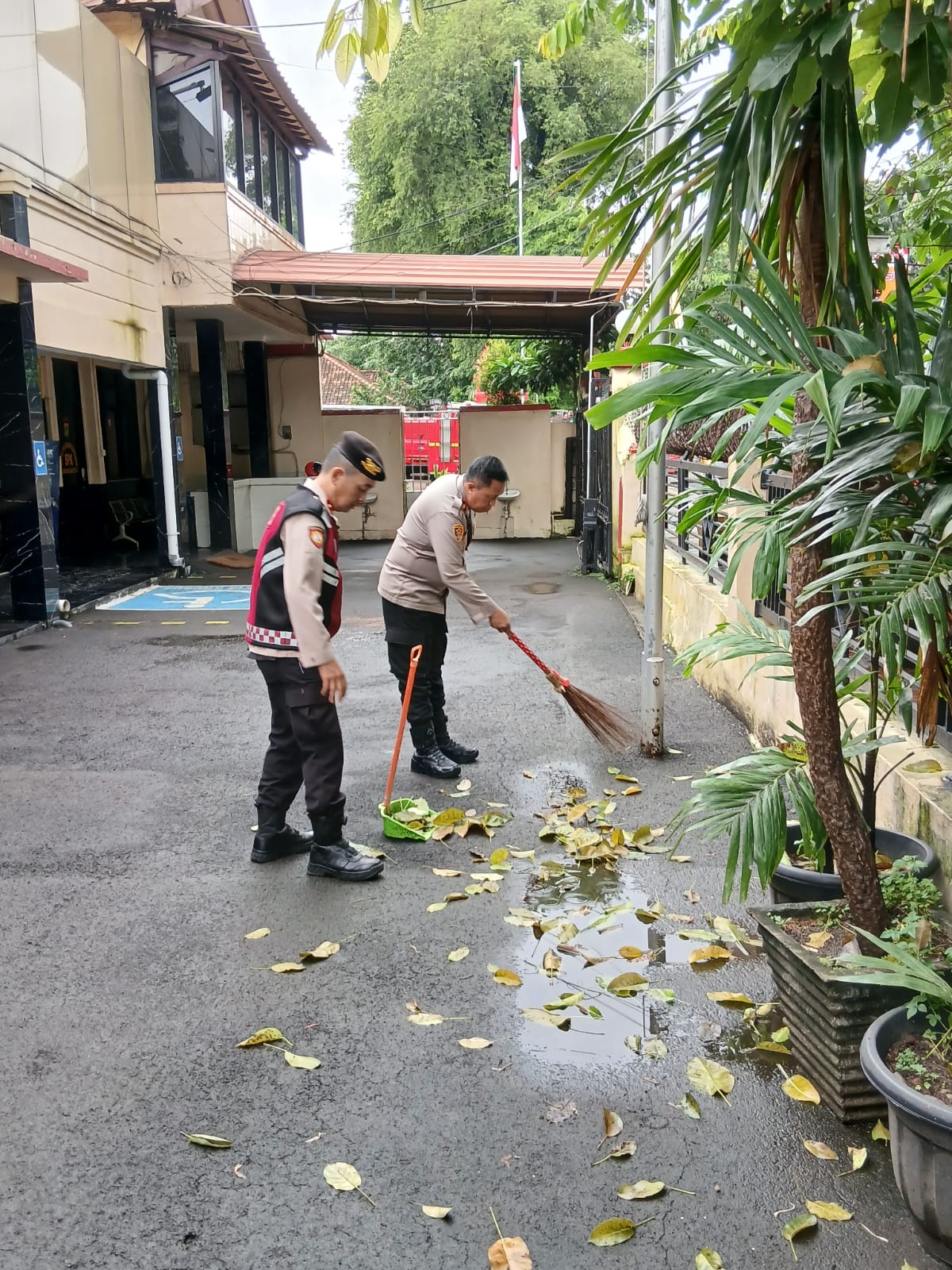 Dalam kegiatan tersebut, para personel membersihkan lingkungan sekitar kantor, mulai dari menyapu halaman, merapikan area sekitar, hingga memastikan