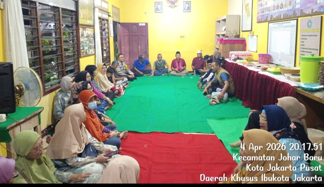Jakarta Pusat – Bhabinkamtibmas Kelurahan Johar Baru, Aiptu Sunarto, bersama Kapolsek Johar Baru Kompol Saiful Anwar menghadiri acara silaturahmi dan Halal Bihalal Idul Fitri 1447 H tingkat RW 09, Kelurahan Johar Baru. Kegiatan digelar di Sekretariat RW 09, Jl. Johar Baru I, Sabtu, (4 April 2026) pukul 19.30 WIB.