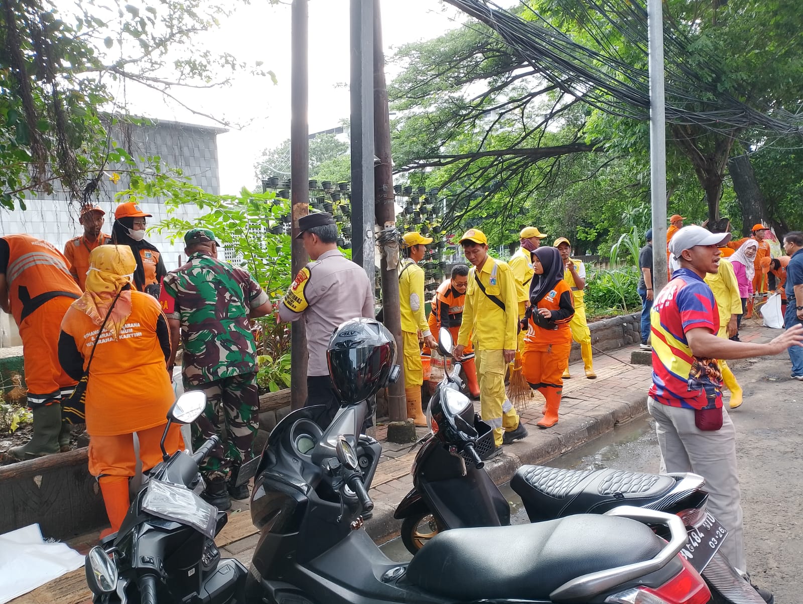 Apel gabungan tingkat Kecamatan Sawah Besar dipimpin langsung oleh Wali Kota Jakarta Pusat dan dihadiri jajaran Pemkot, Camat Sawah Besar, Dewan Kota, Lurah Kartini, unsur TNI-Polri, hingga instansi terkait seperti Damkar, SDA, Pertamanan, dan Dishub. Usai apel, peserta bersama warga melakukan penopingan pohon dan pembersihan lumpur serta sampah di sepanjang Jl. Kartini Raya, dengan hasil akhir sampah diangkut PPSU dan mobil Dinas Lingkungan Hidup.