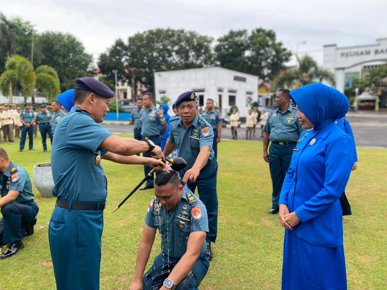 Rangkaian acara ditutup dengan ucapan selamat dari Danlanal Sabang beserta jajaran kepada para prajurit yang naik pangkat, diikuti dengan tradisi penyiraman air kembang sebagai bentuk syukur dan kebersamaan.