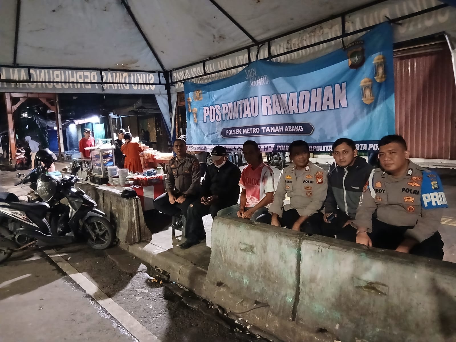 Jakarta Pusat — Personel Polsek Metro Tanah Abang melaksanakan kegiatan pelayanan masyarakat melalui Pos Pantau Ramadhan yang berada di Blok F Pasar Tanah Abang, Kelurahan Kampung Bali, Jakarta Pusat, pada Minggu malam (8/3/2026).