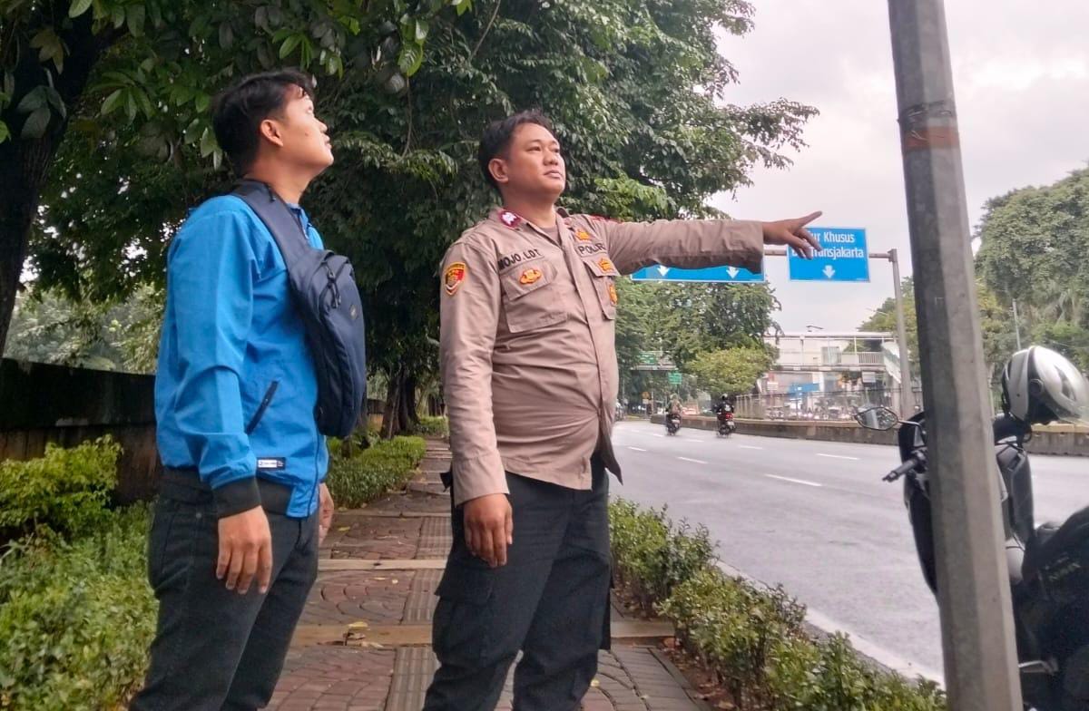 Jakarta Pusat — Personel Polri Aiptu Sudarmojo bersama Aiptu Yulimar melakukan pengecekan laporan pengrusakan fasilitas umum berupa lampu penerangan jalan di Traffic Light (TL) Jembatan Merah, Jalan Gunung Sahari Raya, Kecamatan Sawah Besar, Jakarta Pusat, Kamis (12/2/2026). Kegiatan tersebut merupakan tindak lanjut laporan masyarakat melalui layanan 110 guna memastikan kondisi lokasi dan menjaga keamanan lingkungan.