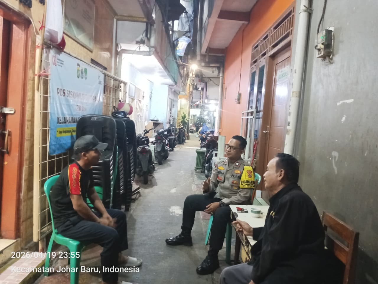 Jakarta Pusat – Guna menjaga situasi keamanan dan ketertiban masyarakat (kamtibmas) tetap kondusif, jajaran Polsek Johar Baru terus mengintensifkan patroli wilayah dan sambang siskamling, termasuk di RW 06 Kelurahan Kampung Rawa, Kecamatan Johar Baru, Jakarta Pusat, pada Minggu (19/4/2026) pukul 23.55 WIB.