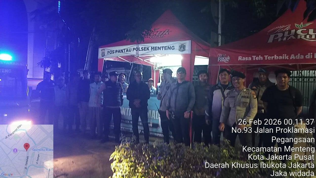 Jakarta Pusat – Memasuki bulan suci Ramadhan, Polsek Metro Menteng meningkatkan langkah preventif dengan melaksanakan pemantauan dan patroli terpadu guna mengantisipasi potensi gangguan kamtibmas, aksi tawuran warga, serta berbagai bentuk kerawanan pada malam hari. Kegiatan ini difokuskan pada titik-titik rawan di wilayah Menteng dan sekitarnya, salah satunya di Pos Pantau Tambak, Jalan Proklamasi, Menteng, Jakarta Pusat. Kamis (26/2/2026)