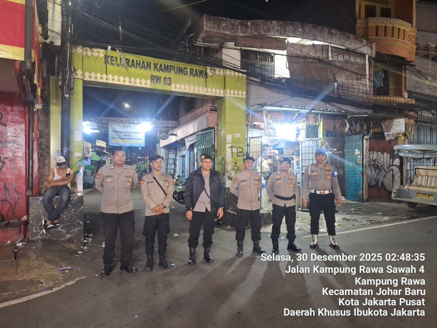Jakarta Pusat – Dalam rangka menjaga situasi keamanan dan ketertiban masyarakat (kamtibmas) tetap aman dan kondusif selama momentum perayaan Natal 2025 dan Tahun Baru 2026 (Nataru), Polsek Johar Baru meningkatkan intensitas patroli cipta kondisi di wilayah hukumnya, Selasa (30/12/2025) dini hari.