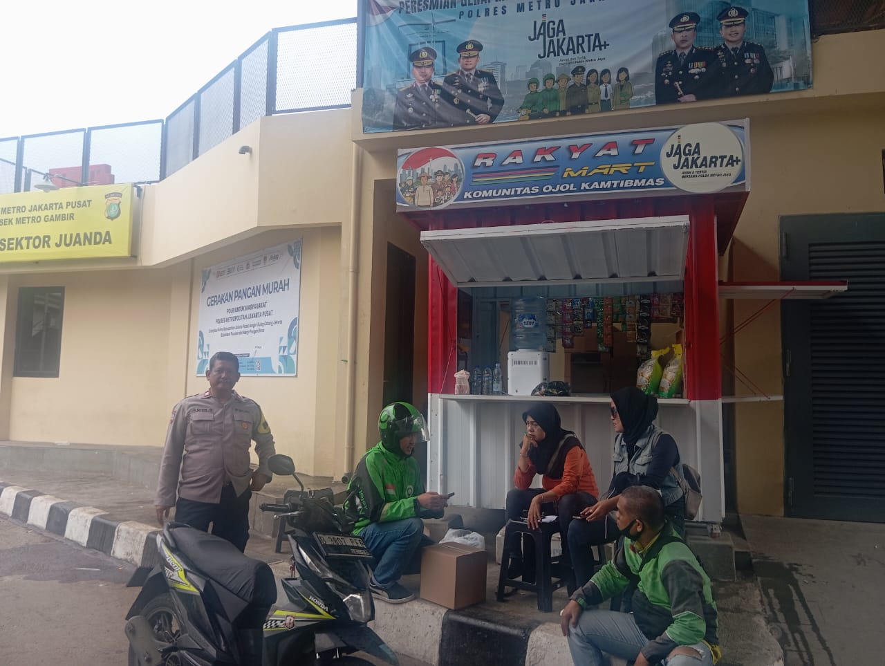Gerai Ojol Mart di kawasan Juanda dikelola oleh komunitas ojek online wilayah Gambir, dipimpin oleh Edi, selaku Ketua Koordinator Ojol Gambir, bersama satu orang karyawannya. Sejak pukul 10.00 WIB, gerai mulai melayani masyarakat dengan menjual berbagai kebutuhan pokok dan makanan ringan. Dalam kegiatan tersebut, Bhabinkamtibmas Kelurahan Kebon Kelapa Aiptu Aris turut melaksanakan program Gerakan Pangan Murah Polri, dengan menyediakan beras Bulog kemasan 5 kilogram seharga Rp55.000.