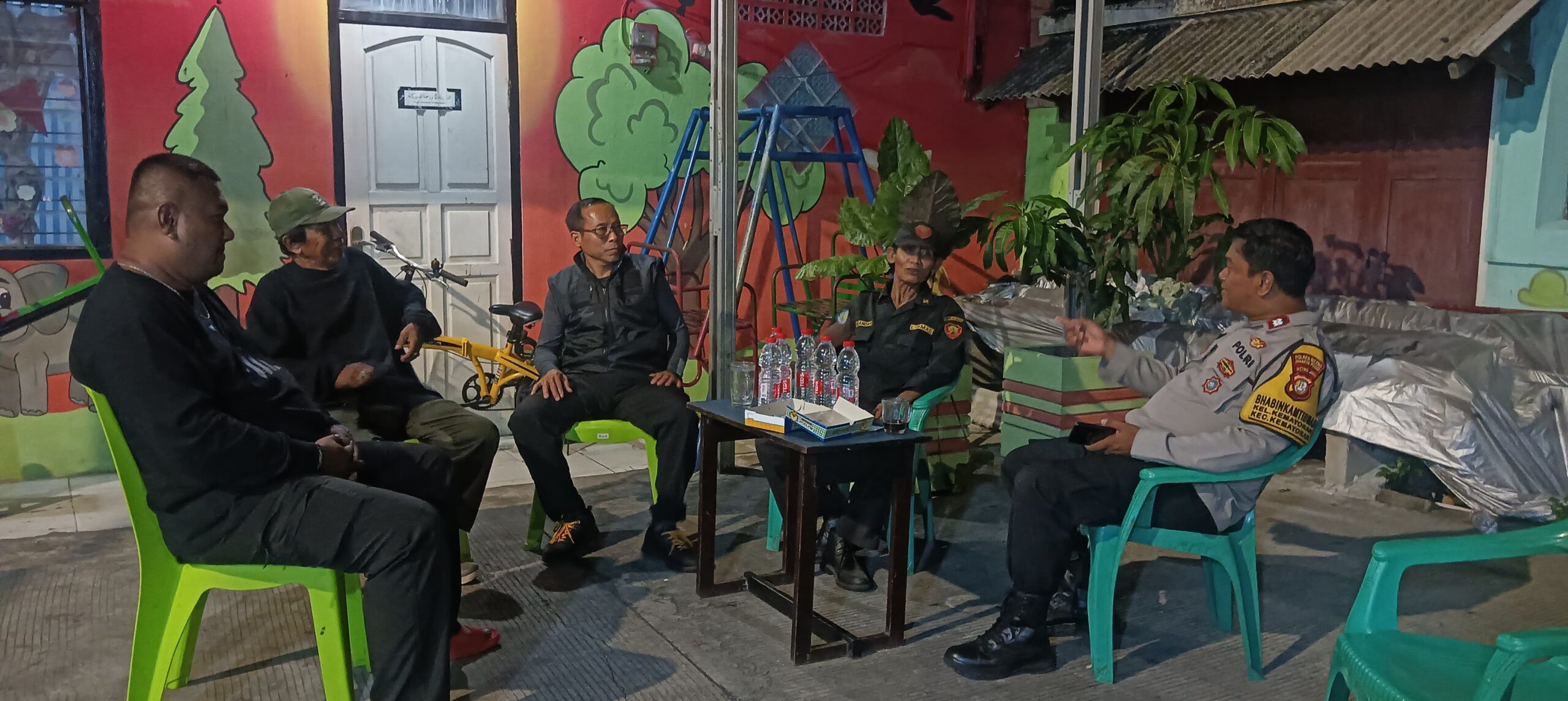 Dalam kegiatan tersebut, petugas bertemu dengan dua petugas keamanan Satkamling RW 01, yaitu Bapak Didin dan Bapak Iskandar. Keduanya diajak berkoordinasi untuk memastikan situasi lingkungan tetap aman dan kondusif, terutama pada jam rawan menjelang subuh.