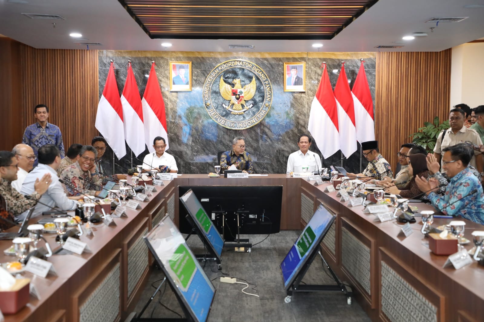 Turut hadir pada rapat tersebut, Menteri Lingkungan Hidup Hanif Faisol Nurofiq, Menteri Perencanaan Pembangunan Nasional (PPN)/Kepala Badan Perencanaan Pembangunan Nasional (Bappenas) Rachmat Pambudy, Wakil Menteri Energi dan Sumber Daya Mineral (ESDM) Yuliot Tanjung, Wakil Menteri Badan Usaha Milik Negara (BUMN) Aminuddin Ma’ruf, serta para pejabat kementerian/lembaga terkait lainnya.