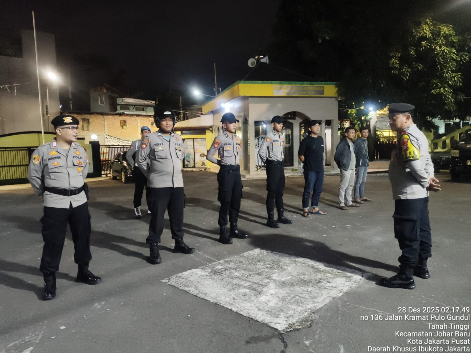 Jakarta Pusat – Guna mengantisipasi gangguan keamanan dan ketertiban masyarakat (guantibmas), Polsek Johar Baru melaksanakan Apel Patroli Cipta Kondisi di Halaman Polsek Johar Baru, Minggu (28/12/2025) dini hari pukul 02.13 WIB.