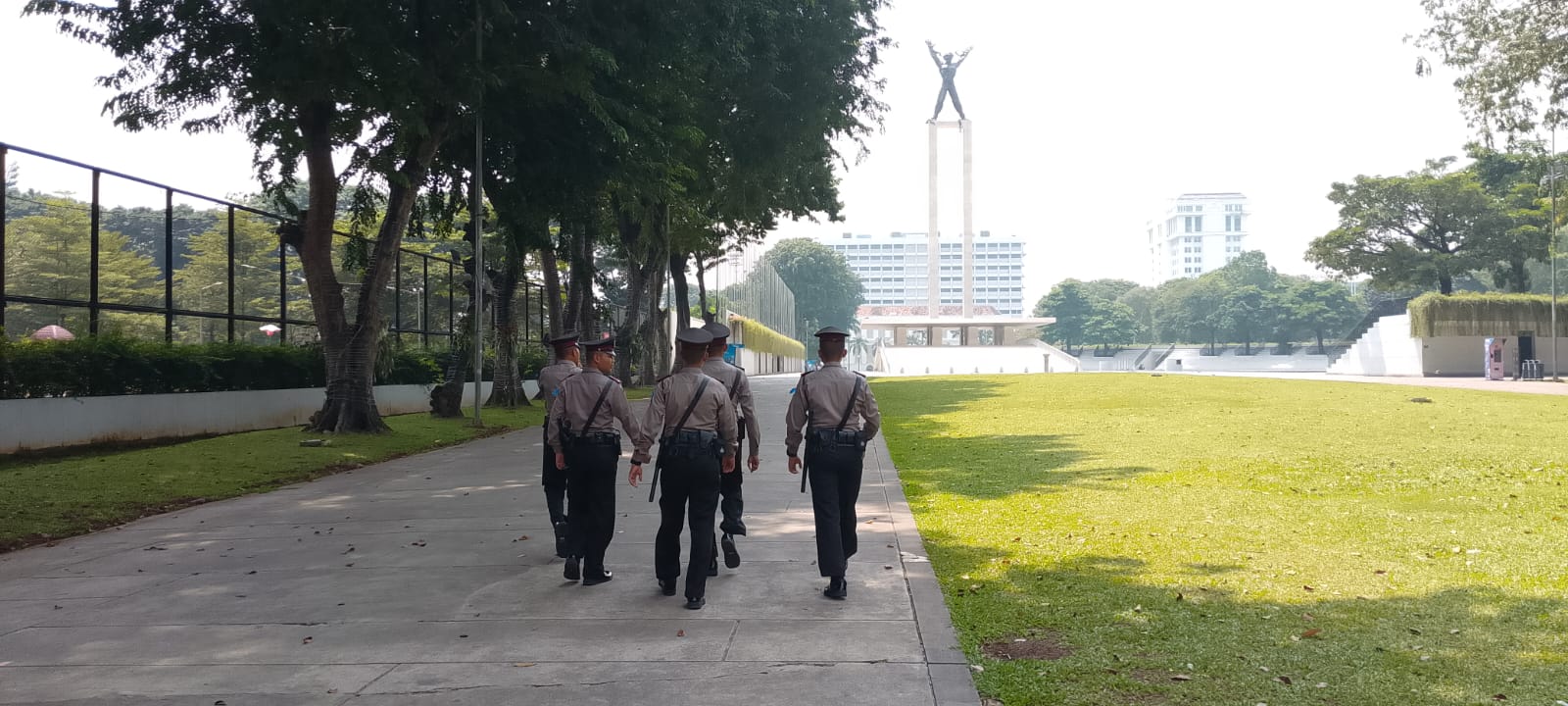 Jakarta Pusat – Panit Samapta Polsek Sawah Besar Aiptu Toni Susanto bersama satu personel melaksanakan kegiatan pembelajaran dan pendampingan kepada 5 siswa latihan kerja (LATJA) Polri, melalui patroli jalan kaki di area publik Taman Lapangan Banteng, Pintu Al Fattah Masjid Istiqlal, Pasar Baru, Sawah Besar, Jakarta Pusat, Senin (27/4/2026). Dalam kegiatan tersebut, petugas juga berinteraksi dan berdialog dengan satuan pengamanan Masjid Istiqlal serta personel Satpol PP yang bertugas di kawasan Lapangan Banteng guna memperkuat sinergitas dalam menjaga keamanan lingkungan.