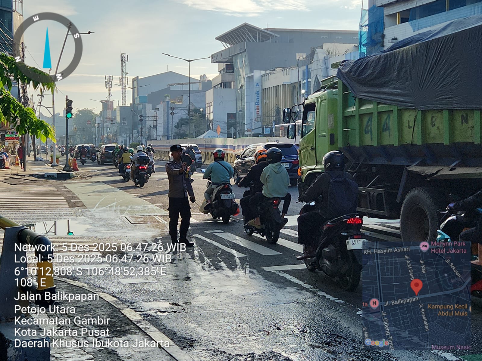 Pastikan Kelancaran Arus Lalu Lintas Pagi Hari, Personil Polsek Gambir Giatkan Pengaturan Lalin di TL Kesehatan