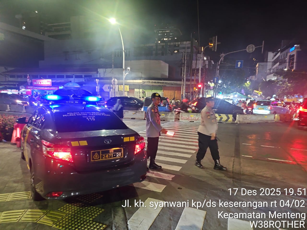 Jakarta Pusat — Kehadiran Polri di tengah masyarakat kembali diwujudkan melalui kegiatan patroli malam yang dilaksanakan Unit Patroli Mobil (Patko) 1041 Polsek Metro Menteng di kawasan Jalan Sabang, Menteng, Jakarta Pusat, pada malam hari. Patroli tersebut dilaksanakan oleh Aiptu Anhar bersama Aipda M. Sudargo sebagai langkah antisipasi terhadap potensi gangguan kamtibmas dan kejahatan malam hari. Kamis (18/12/2025)