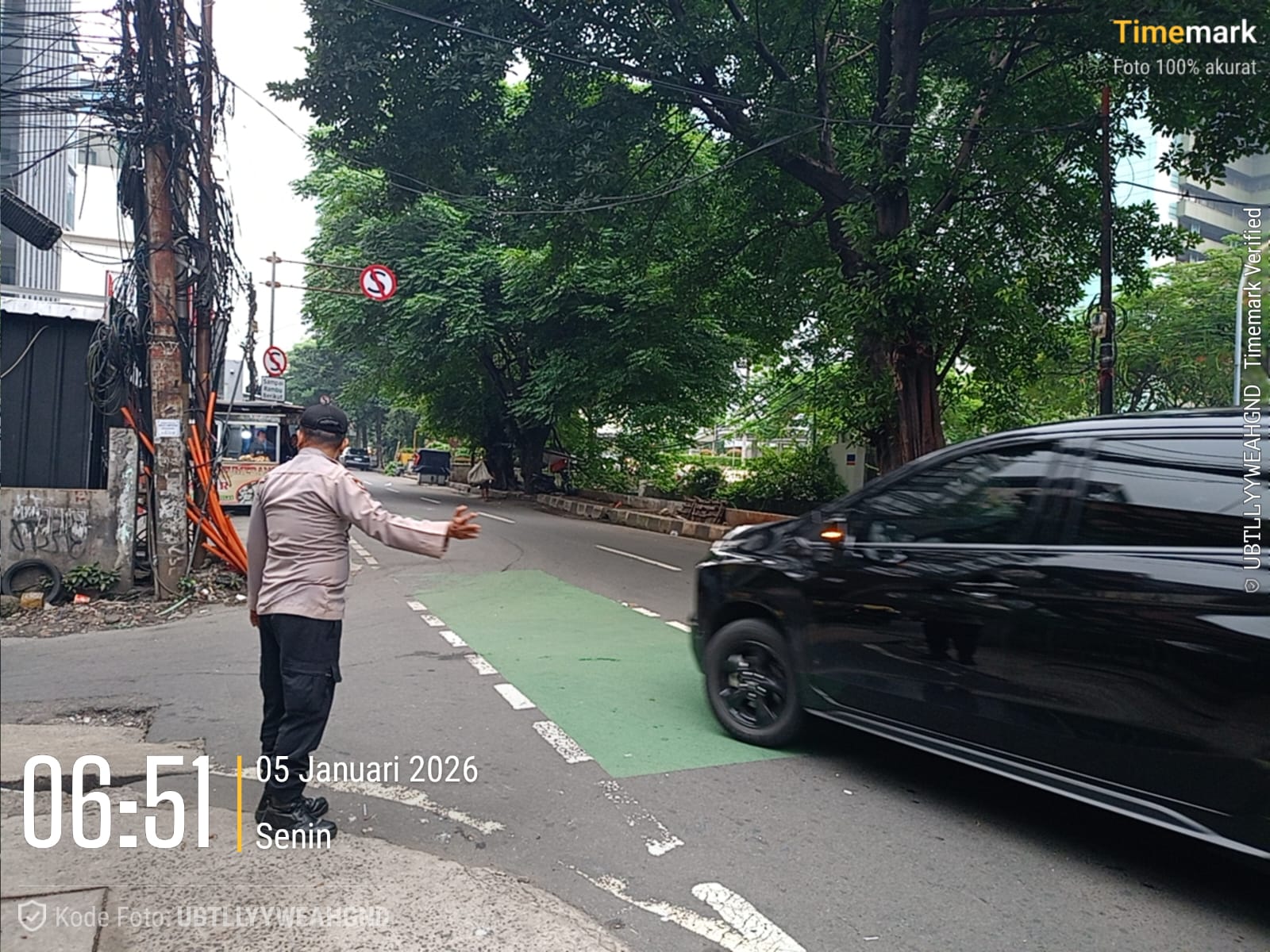 Jakarta Pusat — Senin pagi, 5 Januari 2026, sekitar pukul 06.30 WIB, personel Patroli (Patko) 1051 melaksanakan kegiatan pengaturan arus lalu lintas atau strong point di pertigaan Jalan H.M. Saleh Ishak, Kebon Kacang, Kecamatan Tanah Abang, Jakarta Pusat.