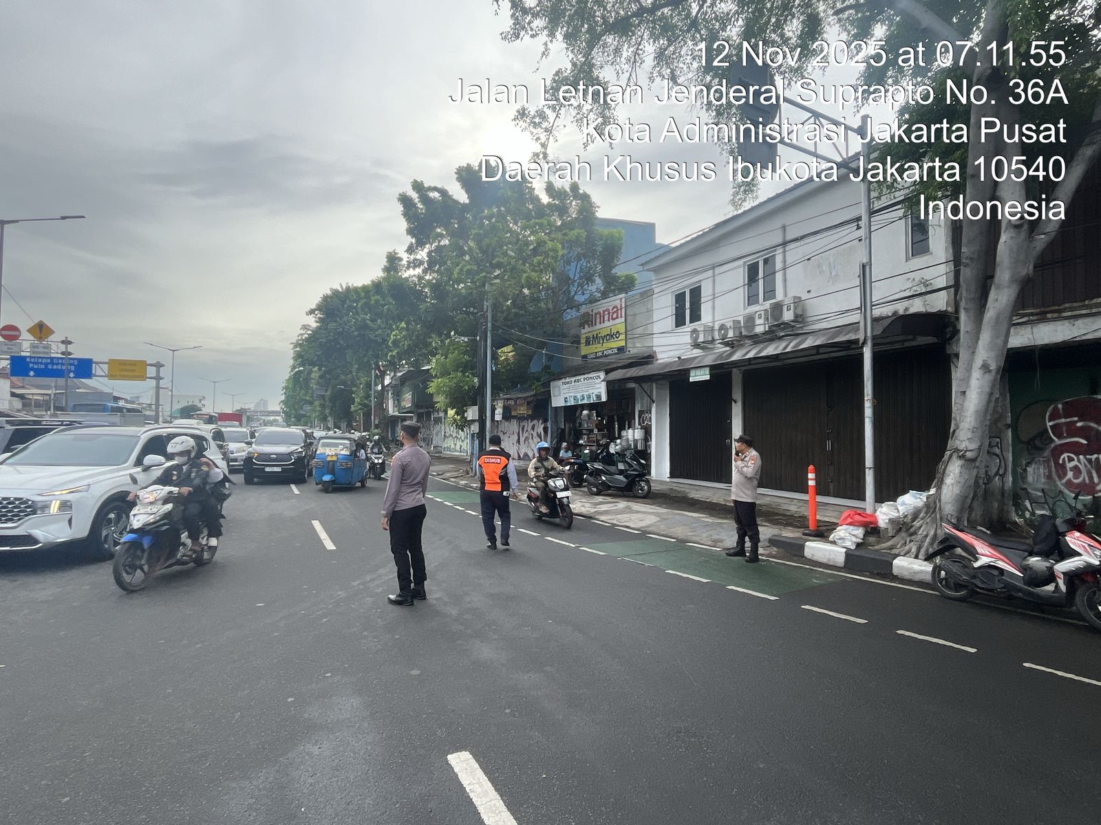 Jakarta Pusat – Pada Rabu, 12 November 2025, pukul 06.00 WIB, Aiptu Andry Gustaf (PS Panit I Binmas) bersama Kapolsubsektor Tanah Tinggi Aiptu Antonius Andi Wibowo, anggota Polsubsektor Briptu Robby, dan petugas Dishub Kecamatan Johar Baru melaksanakan pengaturan lalu lintas (gatur lalin) di Underpass Tanah Tinggi III, Jl. Letjen Suprapto, Kelurahan Tanah Tinggi, Johar Baru.