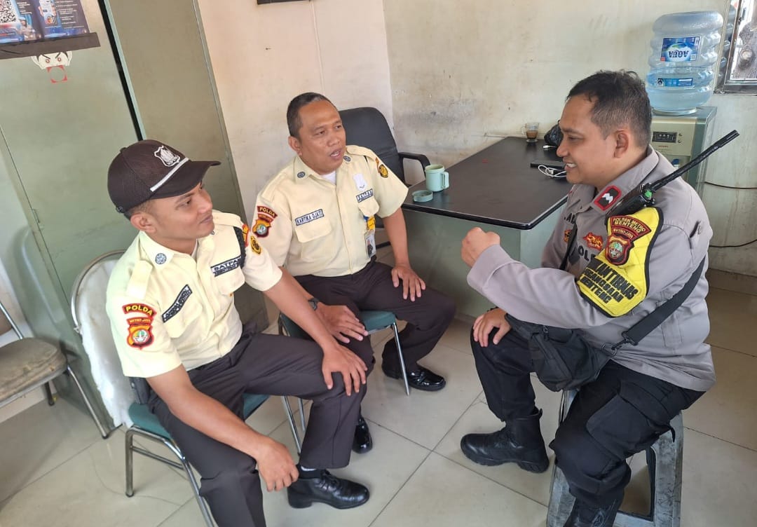 Kedatangan Aipda Adhy disambut langsung oleh petugas security gedung yang tengah bertugas menjaga aktivitas di kompleks kantor. Dalam kesempatan tersebut, ia memberikan himbauan kamtibmas untuk meningkatkan kewaspadaan dan memperkuat pengawasan rutin di area lingkungan kantor yang merupakan salah satu objek vital nasional.