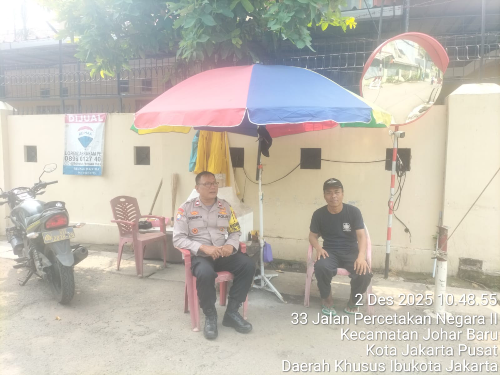 Jakarta Pusat — Upaya menjaga stabilitas keamanan dan ketertiban masyarakat terus dilakukan jajaran Polsek Johar Baru melalui patroli dialogis, sambang warga, dan kegiatan cooling system. Pada Selasa (2/12/2025) pukul 11.00 WIB, Bhabinkamtibmas Kelurahan Johar Baru Aiptu Sunarto melaksanakan patroli door to door di kawasan Perumahan DPS, Jl. Percetakan Negara II RT 13/RW 06, Kelurahan Johar Baru, Jakarta Pusat.