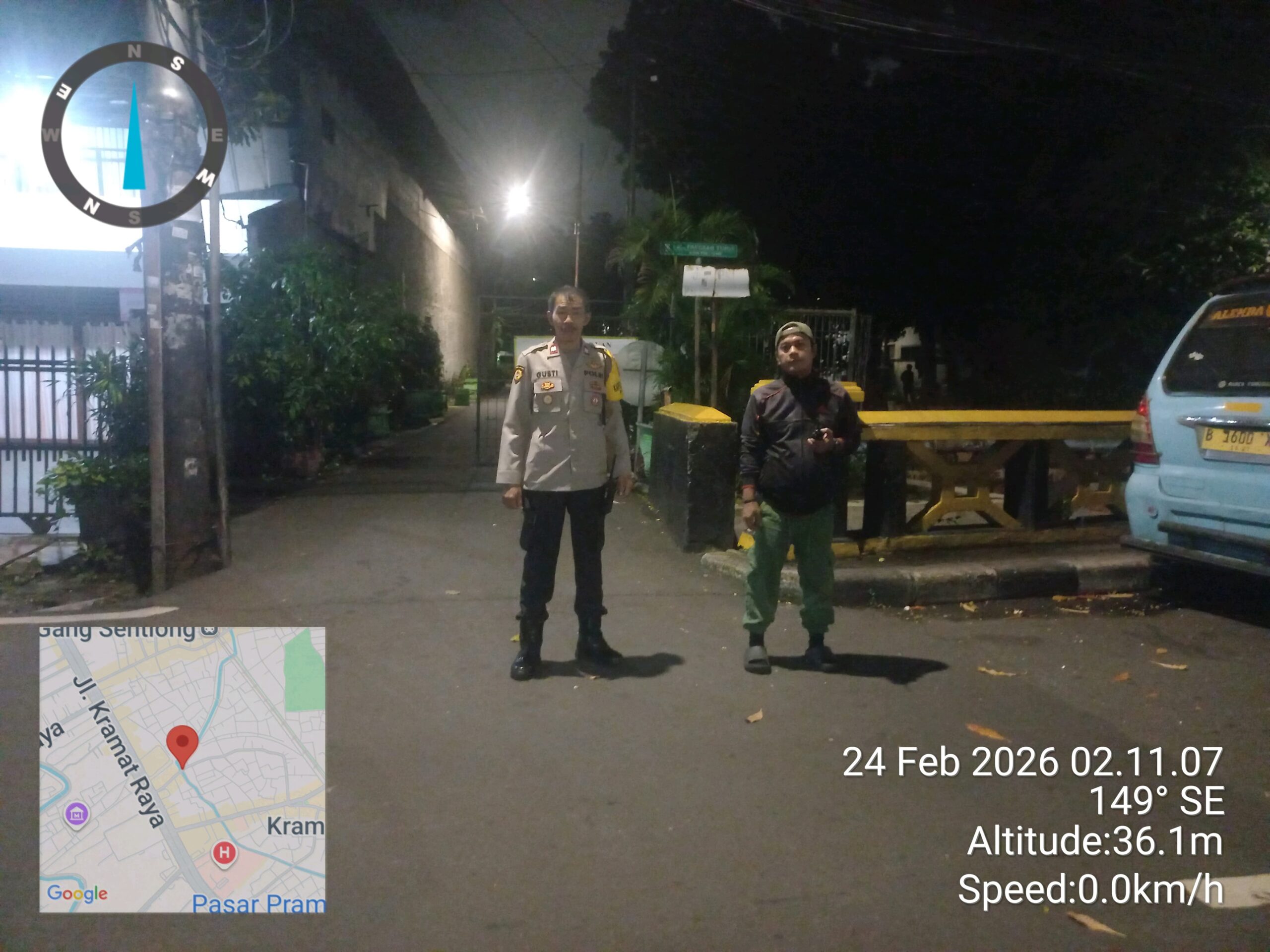 Patroli dipimpin Kapolsubsektor Paseban, Aiptu IGN Jelantik, dengan melibatkan petugas keamanan lingkungan (hansip) dari RW 04, Sopian. Mereka menyisir sejumlah titik yang dinilai rawan, termasuk di kawasan Jalan Paseban Raya hingga sekitar Pasar Paseban.
