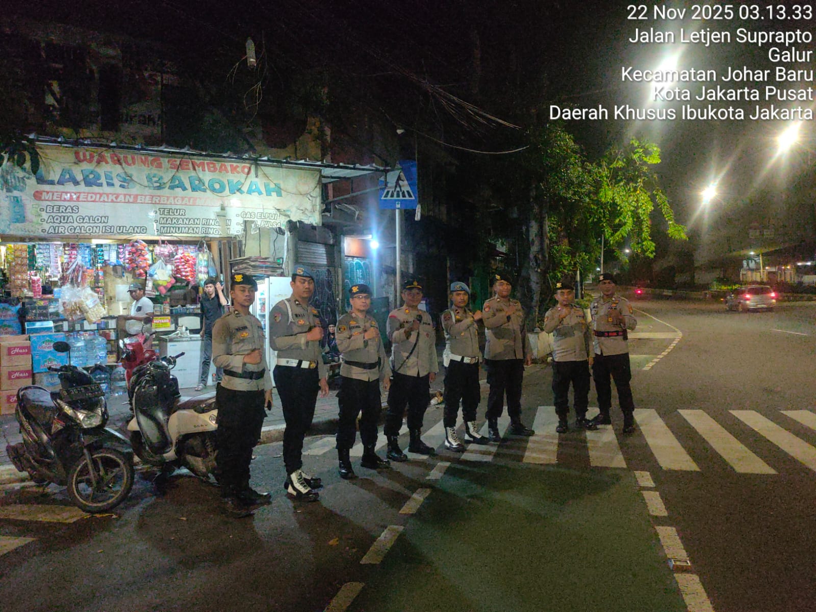 Jakarta Pusat — Dalam upaya mencegah potensi gangguan keamanan dan ketertiban masyarakat (guantibmas), jajaran Polsek Johar Baru melaksanakan patroli mobiling dini hari pada Sabtu, 22 November 2025 pukul 02.37 WIB.