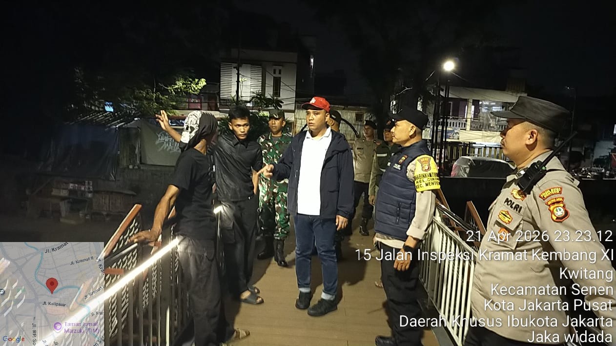 Jakarta Pusat – Dalam upaya menjaga keamanan dan ketertiban masyarakat (kamtibmas), jajaran Polsek Metro Menteng terus mengintensifkan kegiatan patroli cipta kondisi (cipkon) dengan metode jalan kaki di wilayah permukiman padat. Kegiatan kali ini difokuskan di Gang Tembok RW 10, Kebon Sirih, Menteng, Jakarta Pusat, sebagai langkah preventif mengantisipasi potensi gangguan keamanan pada malam hari. Rabu (22/4/2026)