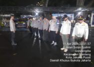 Jakarta – Aparat gabungan dari Polsek Senen bersama unsur Tiga Pilar menggelar Operasi Cipta Kondisi (Cipkon) dan patroli mobile pada Sabtu (11/4/2026) malam. Kegiatan ini dilakukan untuk menjaga situasi keamanan dan ketertiban masyarakat (kamtibmas) tetap kondusif, khususnya pasca kegiatan pertandingan sepak bola.