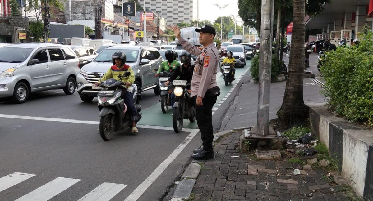 Personel yang terlibat, Aipda Johan (Patko 1053), secara aktif melakukan pengaturan arus kendaraan guna mencegah terjadinya kepadatan serta memastikan kelancaran mobilitas masyarakat.