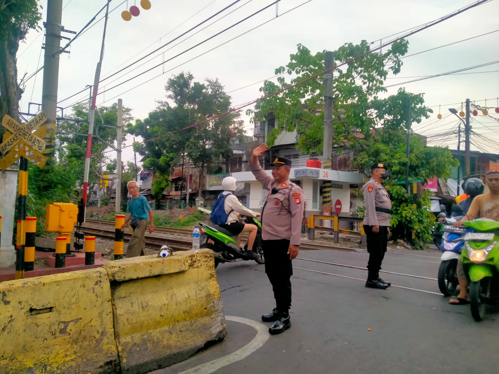 Kegiatan ini bertujuan memastikan arus lalu lintas tetap lancar, aman, dan kondusif, terutama di persimpangan dan pelintasan kereta api yang rawan kepadatan.