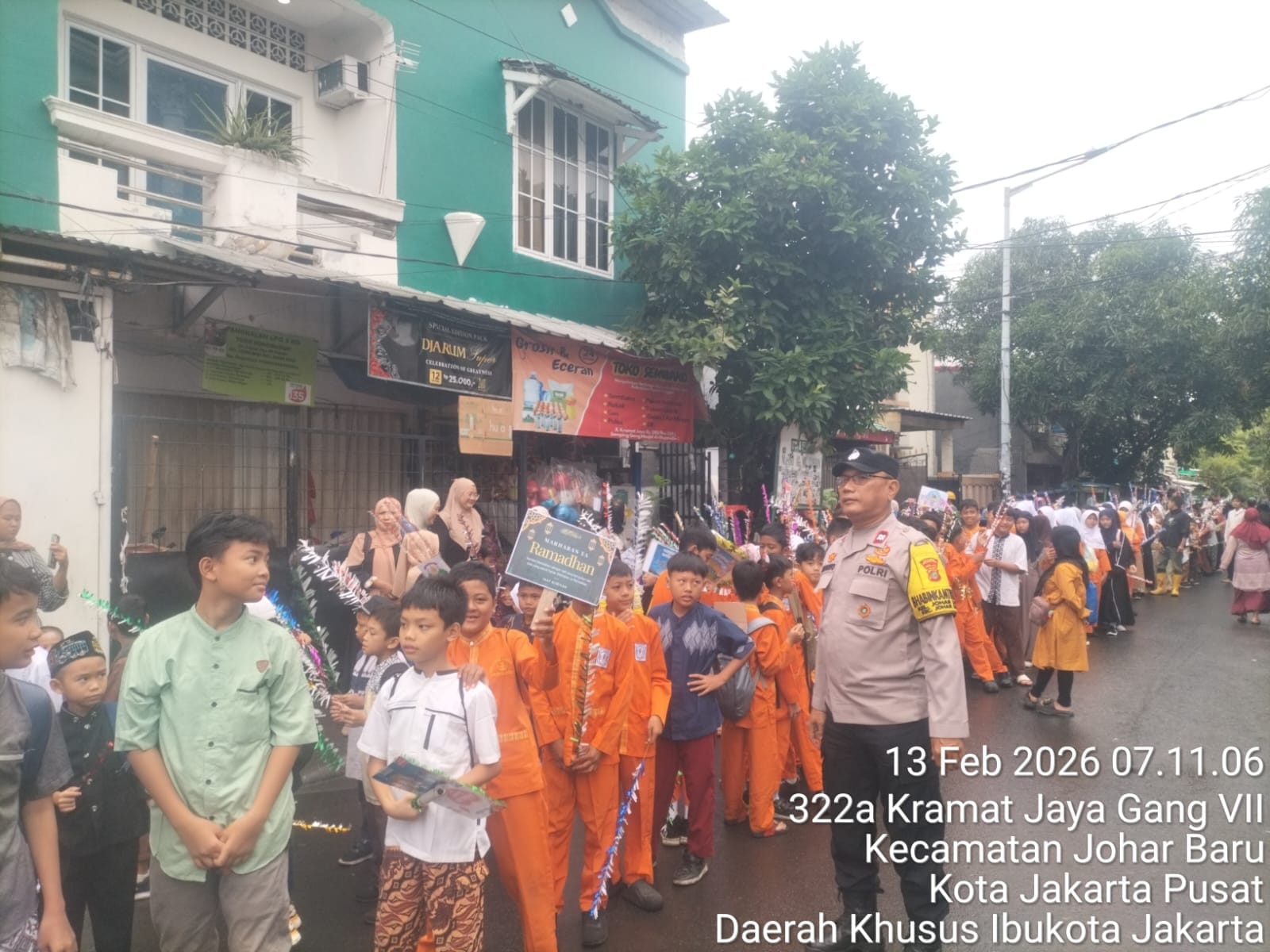 Dalam rangka menyambut datangnya bulan suci Ramadhan 1447 H, Bhabinkamtibmas Kelurahan Johar Baru melaksanakan pengamanan dan monitoring kegiatan karnaval yang digelar oleh SDN 19 Johar Baru, Jumat (13/2/2026) pukul 07.00 WIB.