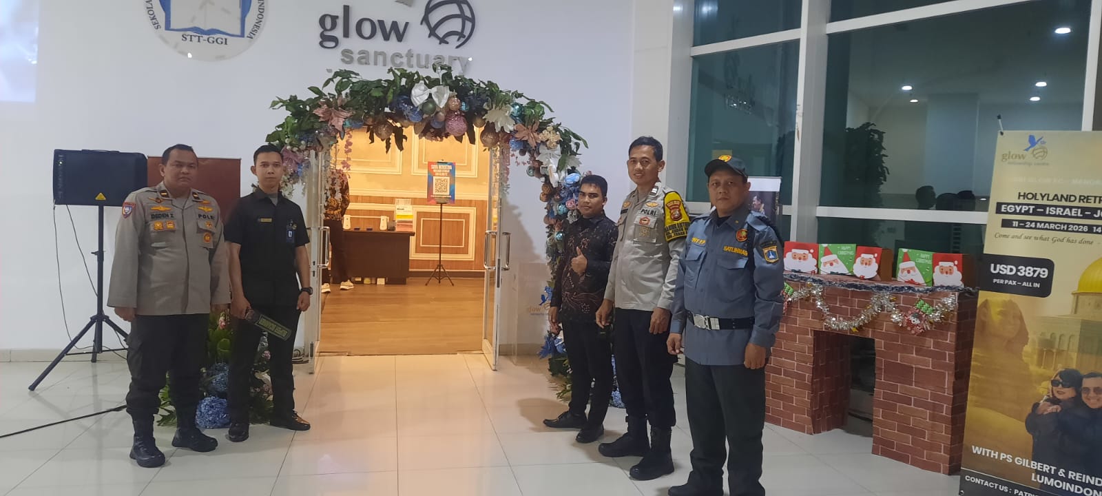 Jakarta Pusat — Polsek Metro Tanah Abang di Pimpin Ipda Deden melaksanakan pengamanan kegiatan ibadah Malam Tahun Baru yang berlangsung di Gereja Glow Fellowship Centre, Apartemen Thamrin Residences, Kebon Melati, Tanah Abang, pada Rabu (31/12/2025). sore hari.