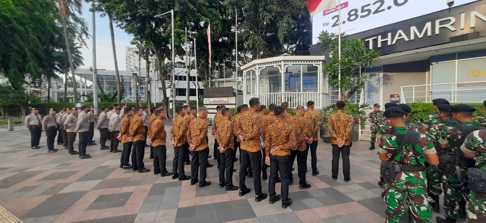 Apel kesiapan pengamanan digelar di depan Polsubsektor Thamrin, Menteng, dan dipimpin langsung oleh Danramil Menteng, Mayor Ober Purba. Sebanyak 192 personel gabungan TNI-Polri diterjunkan untuk mengamankan perimeter Hotel Indonesia Kempinski, jalur lintasan, titik pedestrian, hingga area konsentrasi publik sepanjang Jalan M.H. Thamrin dan Bundaran HI.