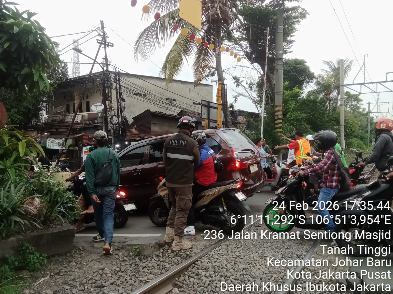 Jakarta Pusat – Guna menjaga kelancaran arus lalu lintas serta memastikan keamanan kegiatan masyarakat, Panit 1 Samapta bersama Unit Propam melaksanakan pengaturan arus lalu lintas di perlintasan KA Sentiong sekaligus pengamanan kunjungan Wali Kota Jakarta Pusat ke Masjid Al Isro, Johar Baru, Selasa (24/2/2026) pukul 17.30 WIB.