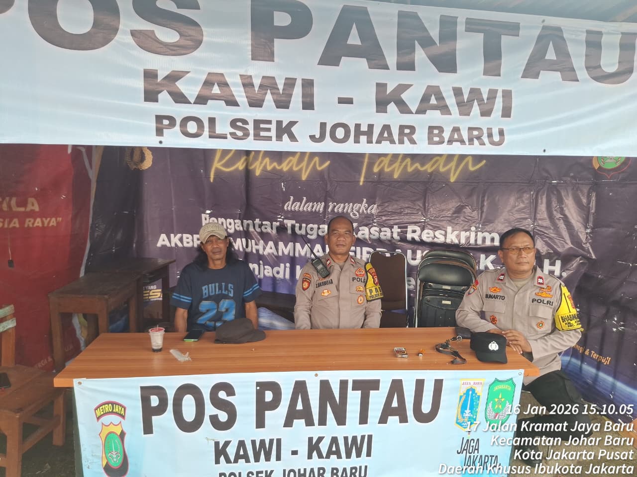 Jakarta Pusat – Untuk memastikan situasi keamanan dan ketertiban masyarakat tetap kondusif, jajaran Polsek Johar Baru memperkuat penjagaan di Pos Pantau Kawi-Kawi, Jalan Kawi-Kawi, Kelurahan Johar Baru, Jakarta Pusat, Kamis (15/1/2026) malam hingga dini hari.
