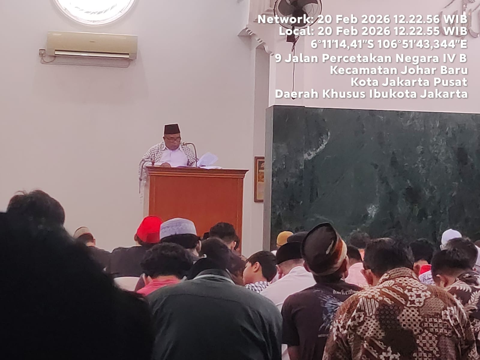 Jakarta Pusat – Dalam upaya memperkuat sinergi dan menjaga situasi keamanan serta ketertiban masyarakat (kamtibmas), jajaran Polsek Johar Baru melaksanakan kegiatan Sholat Jum’at berjamaah di Masjid Izul Islam RW 009, Kelurahan Johar Baru, Kecamatan Johar Baru, Jakarta Pusat, Jumat (20/2/2026) pukul 11.30 WIB.