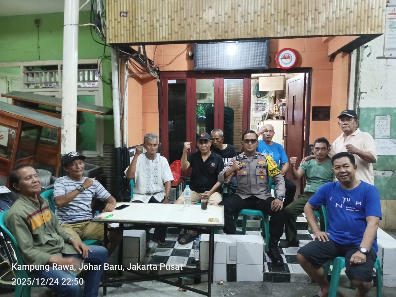 Jakarta Pusat — Guna menjaga stabilitas keamanan dan ketertiban masyarakat (kamtibmas), Bhabinkamtibmas Kelurahan Kampung Rawa Polsek Johar Baru melaksanakan patroli wilayah sekaligus kunjungan ke Pos Kamling RW 01, Rabu malam, 24 Desember 2025, pukul 22.50 WIB.