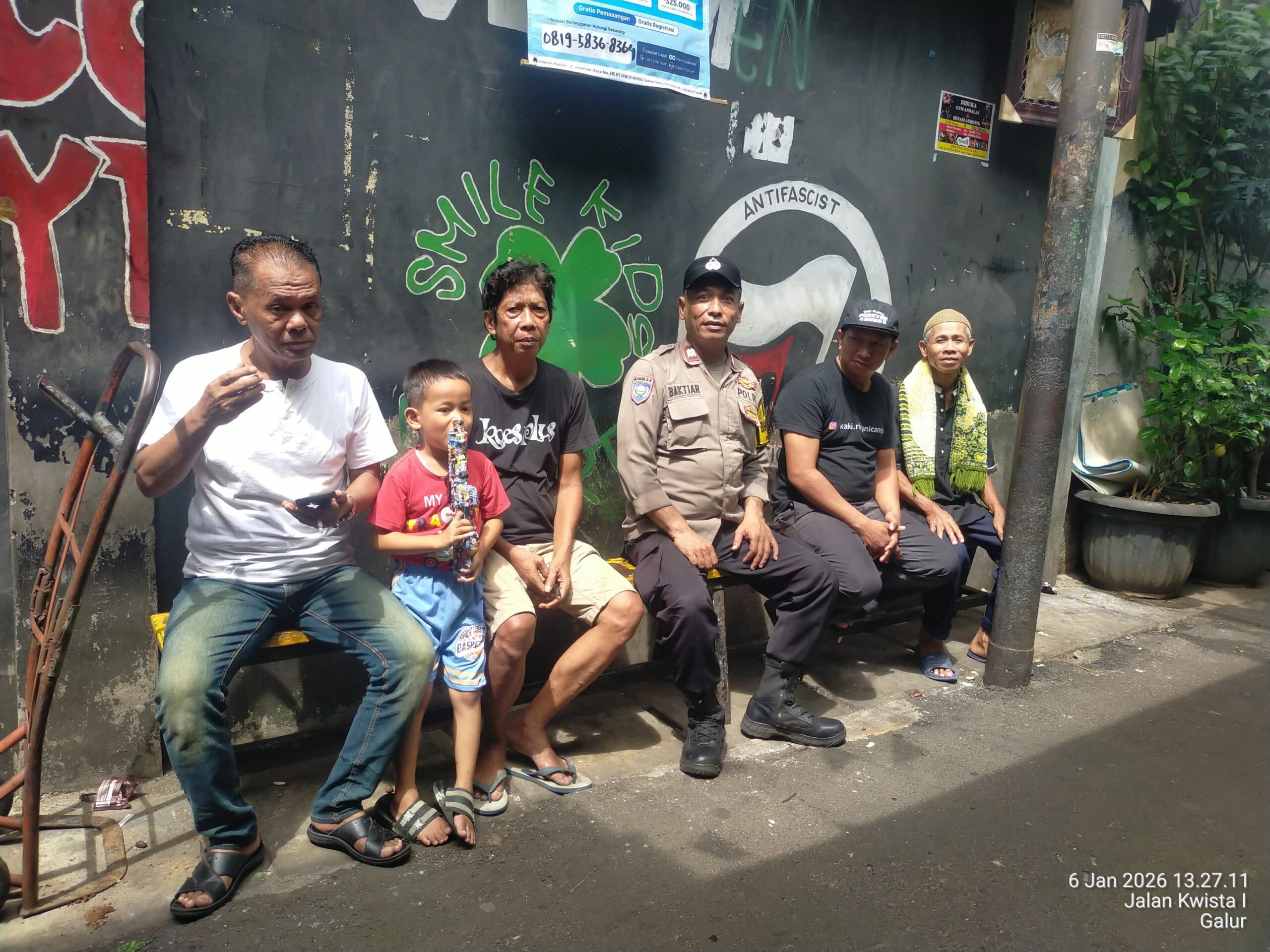 Dalam kegiatan tersebut, Aiptu Baktiar bergabung dan berdialog langsung dengan Ardin, Ketua RT 003/04 Galur, Yongki, Ketua RT 02/04 Galur, serta warga sekitar. Dialog berlangsung hangat dengan fokus pada penyampaian imbauan kamtibmas dan tukar informasi terkait potensi kerawanan wilayah.