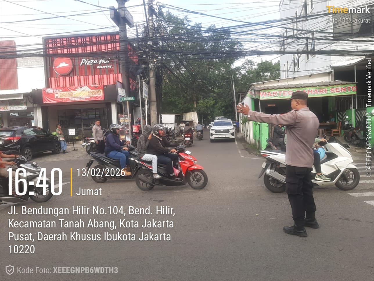 Jakarta Pusat — Dalam rangka menjaga kelancaran arus lalu lintas serta mengantisipasi potensi gangguan kamtibmas pada jam aktivitas sore hari, jajaran Polsek Metro Tanah Abang melaksanakan kegiatan pengaturan lalu lintas strong point / police hazard di Pertigaan Jl. Mutiara, Kelurahan Bendungan Hilir, Kecamatan Tanah Abang, Jakarta Pusat, Jumat (13/2/2026).