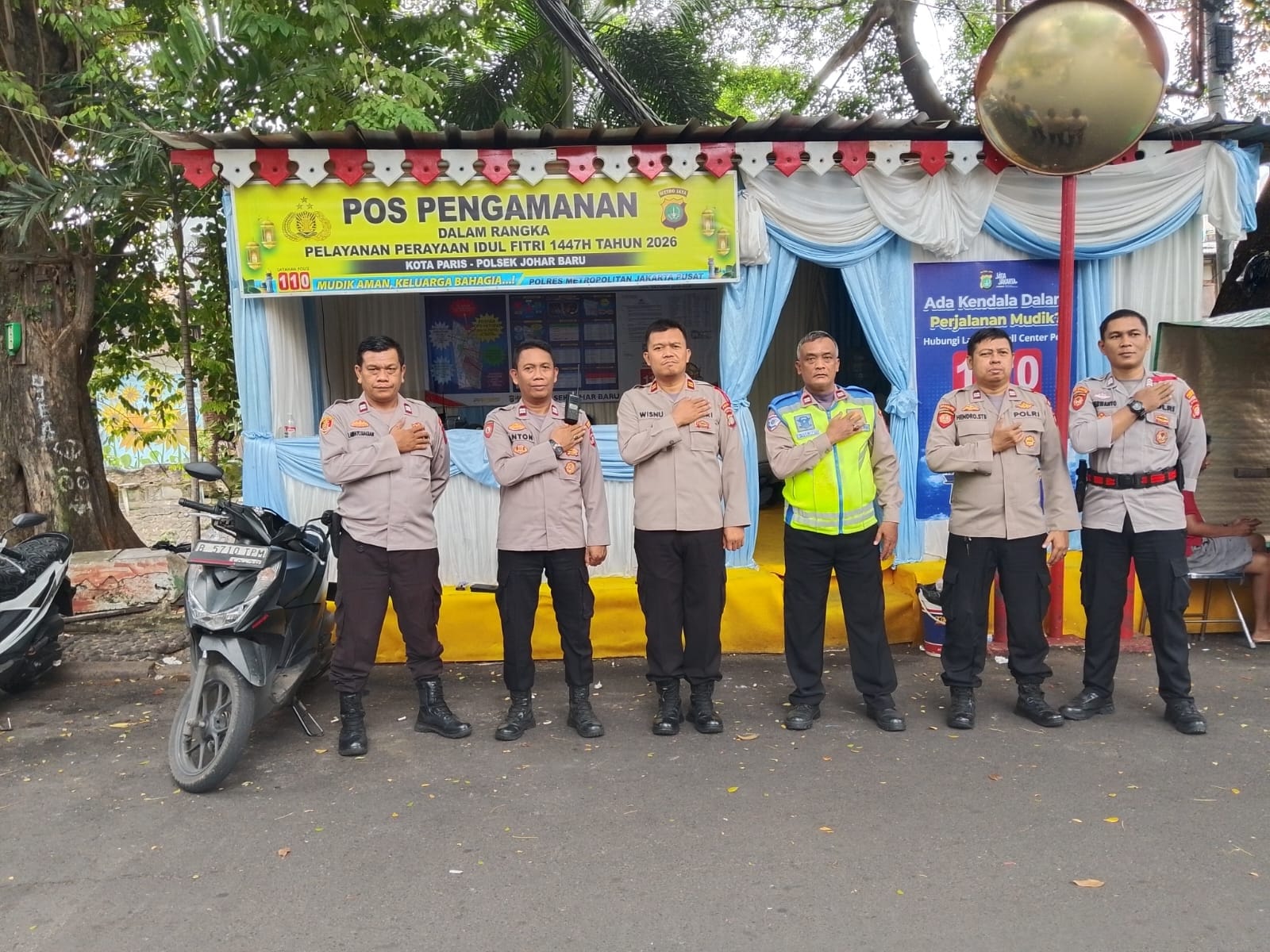 Jakarta Pusat – Dalam rangka pengamanan arus mudik dan perayaan Idulfitri, jajaran kepolisian menyiagakan personel di Pos Pengamanan (Pospam) Operasi Ketupat Jaya 2026 yang berlokasi di kawasan Kota Paris, Kelurahan Tanah Tinggi, Kecamatan Johar Baru, Rabu (25/3/2026).
