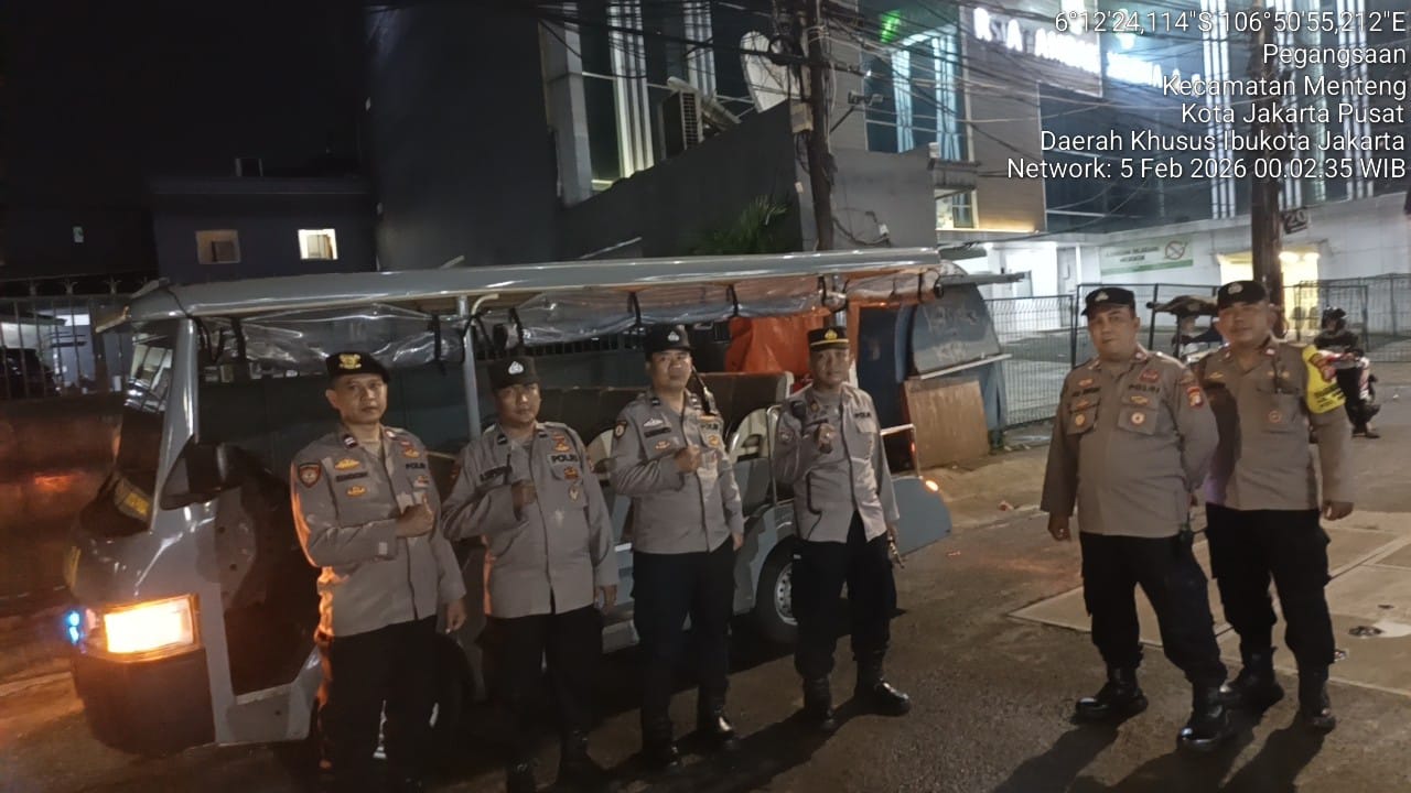 Jakarta Pusat – Polsek Metro Menteng kembali menunjukkan komitmennya dalam menjaga stabilitas keamanan dan ketertiban masyarakat dengan melaksanakan patroli cipta kondisi guna mengantisipasi potensi gangguan kamtibmas, khususnya tawuran warga dan kerawanan pada malam hingga dini hari. Kegiatan patroli tersebut dipimpin langsung oleh Perwira Pengendali (Padal) AKP Irawan Junaedi dengan menyasar wilayah perbatasan Manggarai–Tambak Ujung, Kecamatan Menteng, Jakarta Pusat, yang dinilai rawan terjadi gangguan keamanan. Kamis (5/2/2026)