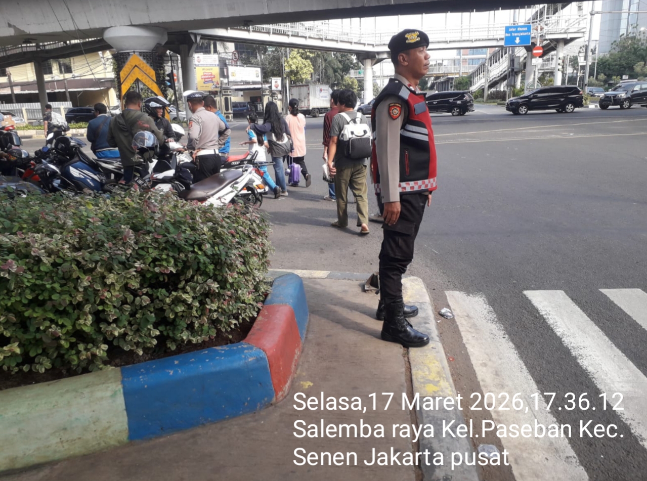 Jakarta — Personel Polsek Senen melaksanakan kegiatan pengaturan lalu lintas pada Selasa (17/3) sore guna mengantisipasi kepadatan kendaraan dan potensi gangguan keamanan serta ketertiban masyarakat (kamtibmas) di wilayah Jakarta Pusat.