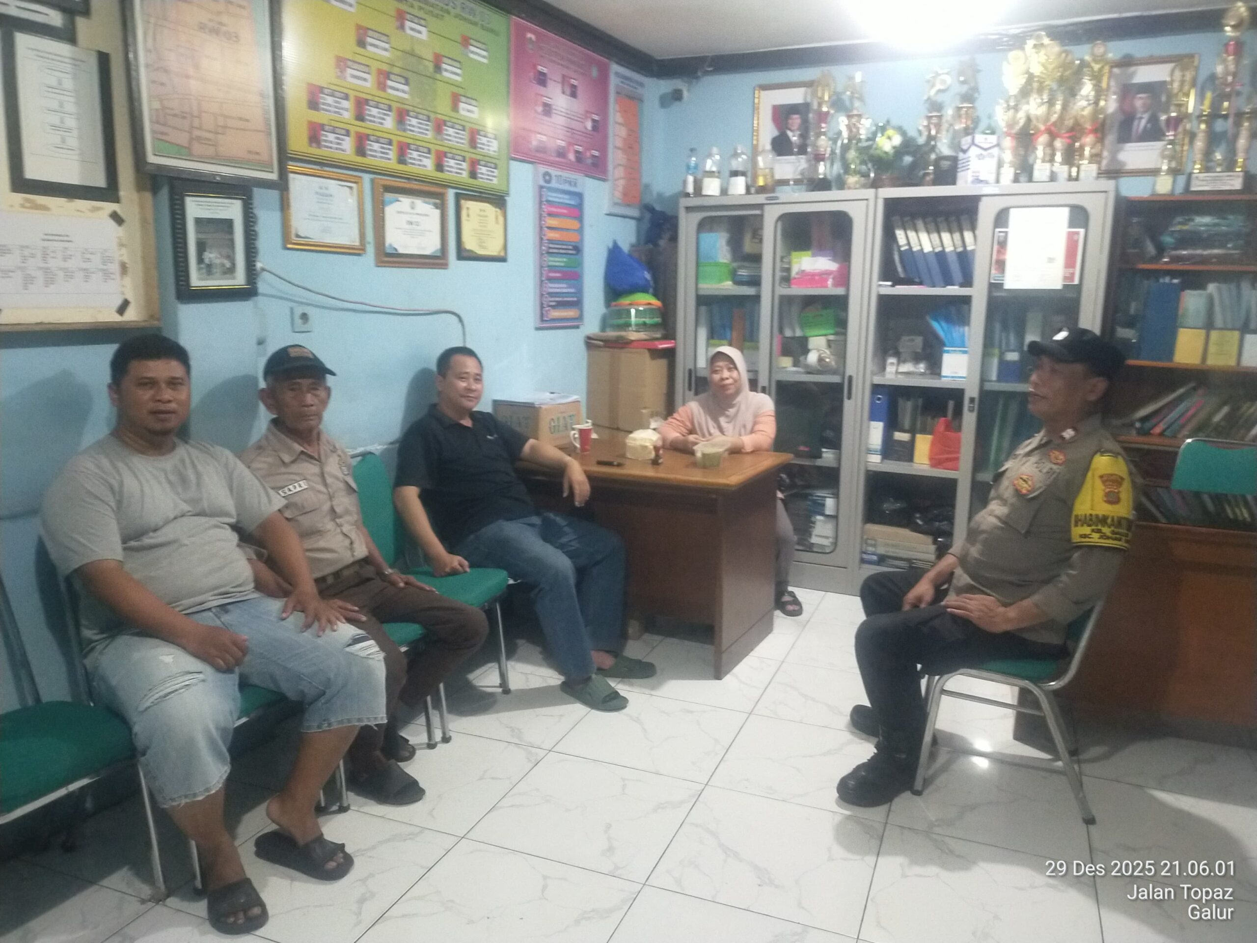 Jakarta Pusat – Dalam rangka menjaga keamanan dan ketertiban masyarakat (kamtibmas) tetap kondusif menjelang perayaan Natal 2025 dan Tahun Baru 2026 (Nataru), jajaran Polsek Johar Baru melaksanakan kegiatan sambang Pos Kamling di wilayah Kelurahan Galur, Senin (29/12/2025) malam.