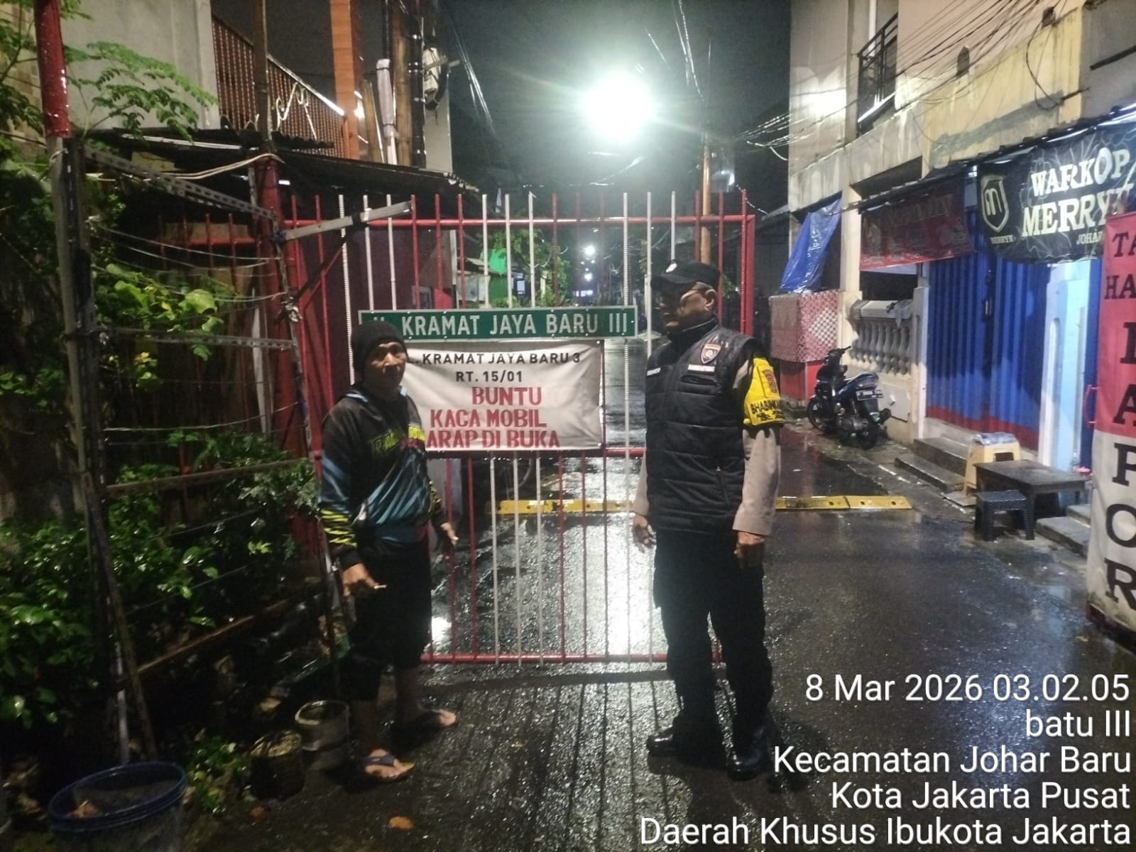 Jakarta Pusat – Upaya menjaga situasi keamanan dan ketertiban masyarakat terus dilakukan jajaran kepolisian melalui kegiatan sambang dan patroli wilayah. Seperti yang dilakukan Bhabinkamtibmas Kelurahan Johar Baru Aiptu Sunarto yang menyambangi Poskamling RT 15 RW 01, Jalan Kramat Jaya Baru, Kelurahan Johar Baru, Kecamatan Johar Baru, Jakarta Pusat, Minggu (8/3/2026) pukul 03.00 WIB.