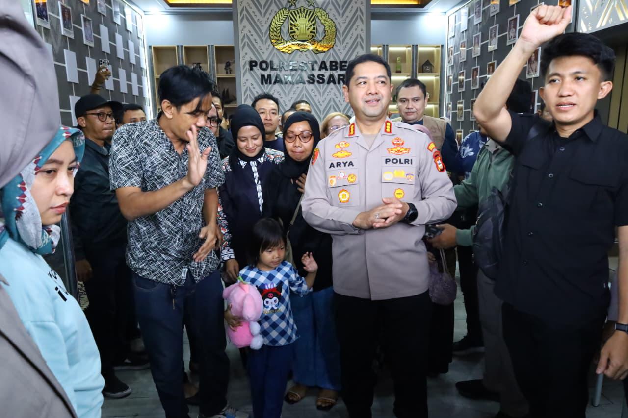 “Setelah beberapa hari hilang, dengan berbagai upaya dan doa dari masyarakat Kota Makassar, Alhamdulillah kita bersyukur kepada Allah SWT anaknya sudah ditemukan tadi malam dan bisa kembali ke Makassar hari ini,” ujar Kombes Pol Arya.