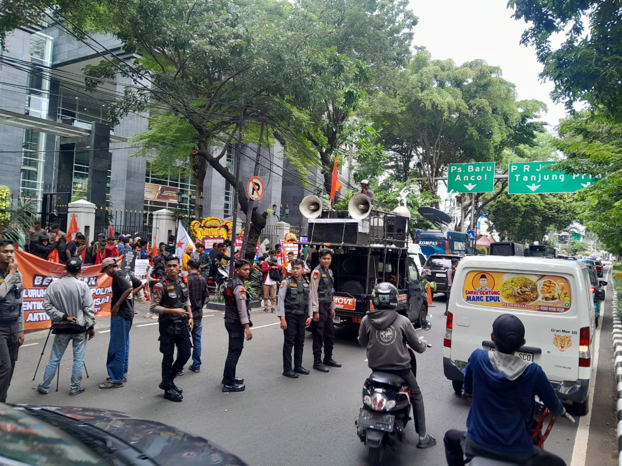 Sementara itu, Kapolsek Kemayoran Kompol Dr. Agung Ardiyansyah, S.H., M.H. menyampaikan bahwa jajaran di lapangan mengedepankan pendekatan humanis dan komunikasi dialogis selama pengamanan berlangsung.