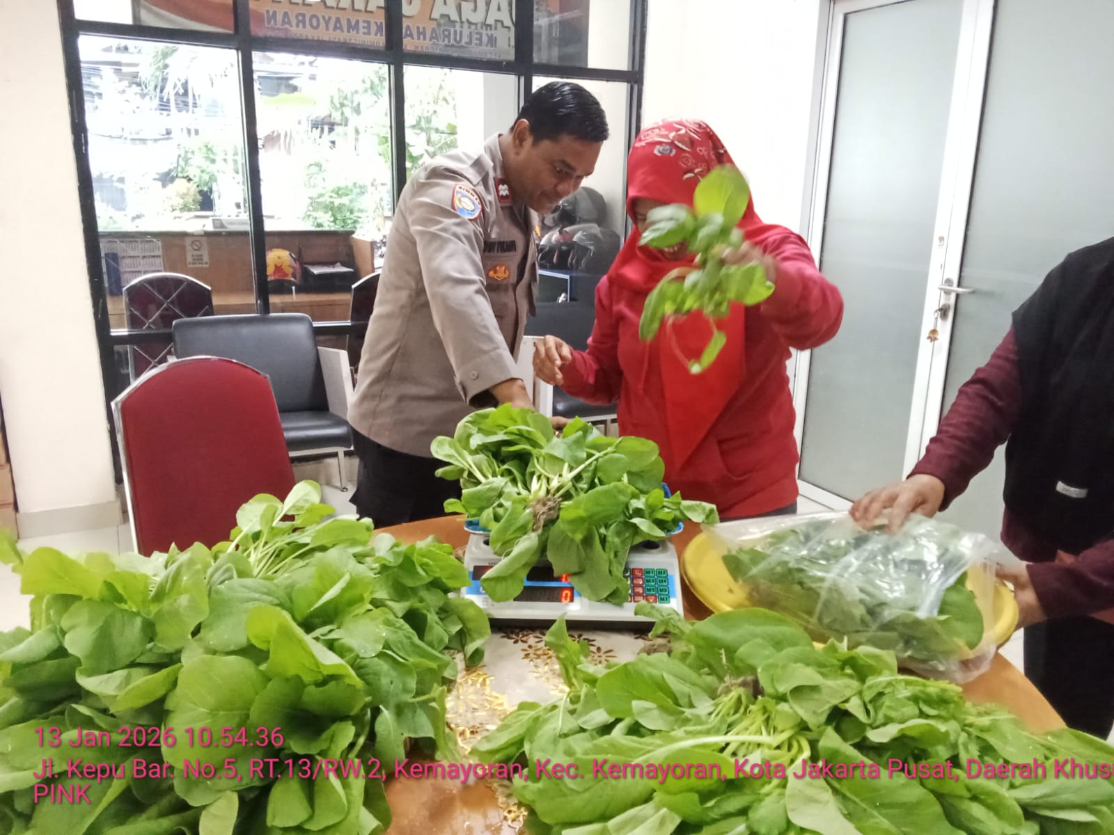 Kegiatan yang dimulai sekitar pukul 10.30 WIB tersebut dipimpin oleh Bhabinkamtibmas Kelurahan Kemayoran, Aiptu Dwi Yulianto, dan melibatkan unsur kelurahan serta ibu-ibu PKK. Panen sayur sawi ini merupakan bagian dari pemanfaatan lahan lingkungan sebagai bentuk dukungan terhadap program ketahanan pangan di wilayah perkotaan.