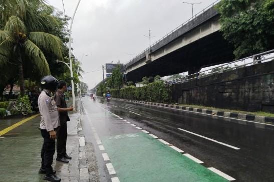 Selain memantau kondisi lingkungan, petugas juga melakukan pengaturan lalu lintas secara humanis, mengedepankan keselamatan pengguna jalan serta memberikan rasa aman bagi masyarakat sekitar.