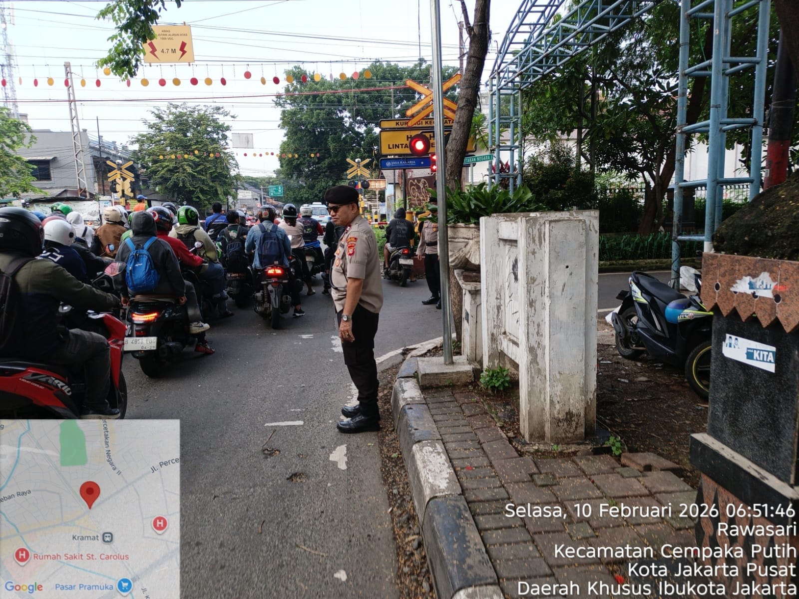 Adapun lokasi pengaturan lalu lintas meliputi Traffic Light Galur, Underpass Tanah Tinggi, Pelintasan Kereta Api Sentiong, serta Pelintasan Kereta Api Percetakan Negara I. Kehadiran personel kepolisian di titik-titik tersebut bertujuan untuk mengurai potensi kemacetan serta menjamin keselamatan pengguna jalan, khususnya pelajar dan pekerja yang memulai aktivitas.