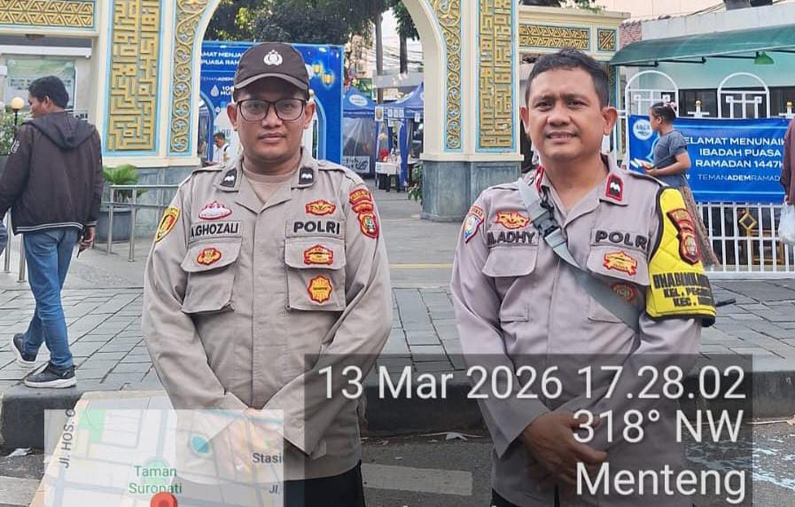 Jakarta Pusat – Untuk menjaga situasi keamanan dan ketertiban masyarakat (kamtibmas) selama bulan suci Ramadhan, jajaran Polsek Metro Menteng melaksanakan kegiatan pelayanan dan pengamanan pasar tumpah Ramadhan di kawasan Masjid Agung Sunda Kelapa, yang berlokasi di Jalan Taman Sunda Kelapa No. 16, Menteng, Jakarta Pusat. Jumat (13/3/2026)