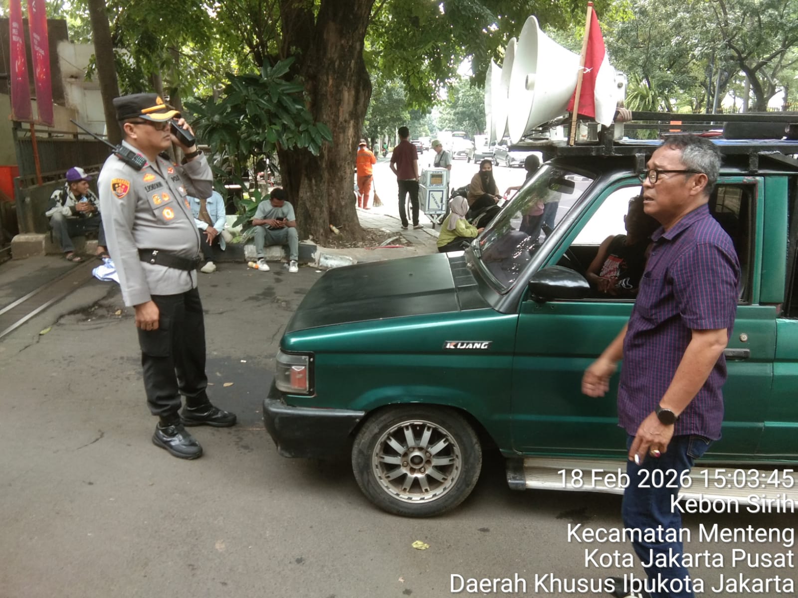 Jakarta Pusat – Polsek Metro Menteng melaksanakan kegiatan pelayanan pengamanan aksi unjuk rasa (unras) di Kementerian Haji dan Umrah Republik Indonesia yang berlokasi di Jalan MH Thamrin No. 6, Jakarta Pusat. Kegiatan ini merupakan bagian dari komitmen kepolisian dalam memberikan pelayanan prima, menjamin keamanan, serta menjaga ketertiban umum di wilayah hukum Menteng. Rabu (18/2/2026)