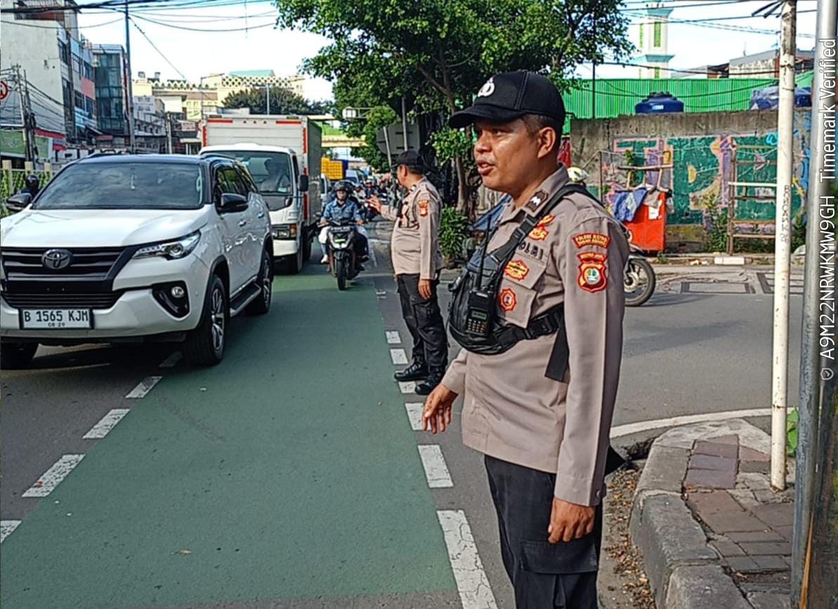 Selama bertugas, para personel aktif melakukan pengaturan kendaraan yang melintas serta memantau situasi sekitar untuk mencegah terjadinya gangguan kamtibmas maupun tindak kejahatan jalanan. meskipun arus kendaraan terpantau padat, situasi secara umum tetap terkendali, aman, dan kondusif berkat pengawasan langsung dari petugas di lapangan.